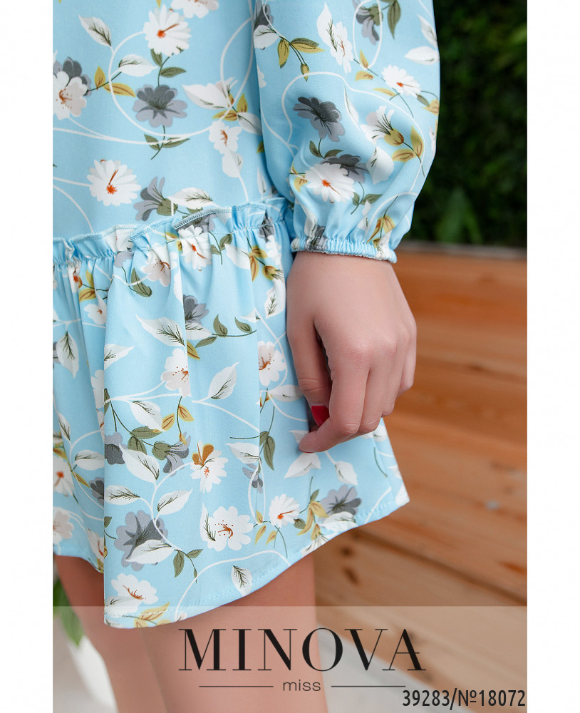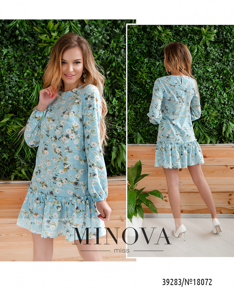 Женственное и приятное платье с полукруглым вырезом горловины и пуговицей с петелькой сзади под шеей. Платье без карманов, в рукава на запястьях вшиты резинки, подол с подшитыми снизу оборками.