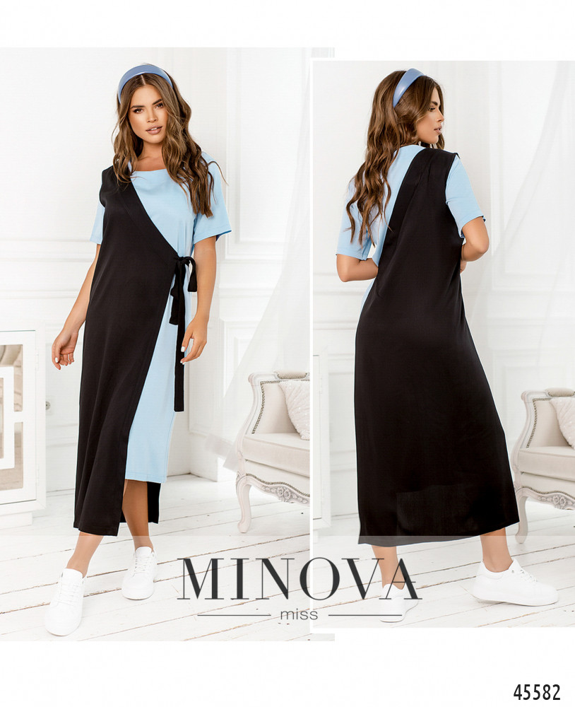 Если вам нравится самовыражаться через свой стиль и вы любите одежду необычного неожиданного кроя, то обратите внимание на эту модель. Элегантное минималистичное платье миди с короткими рукавами и полукруглым вырезом горловины в комплекте с удлиненной контрастной накидкой на одно плечо, завязывающейся сбоку на талии, сделает ваш образ стильным, модным и изысканным. Вы можете носить их вместе или раздельно, создавая различные образы с другими вещами.
