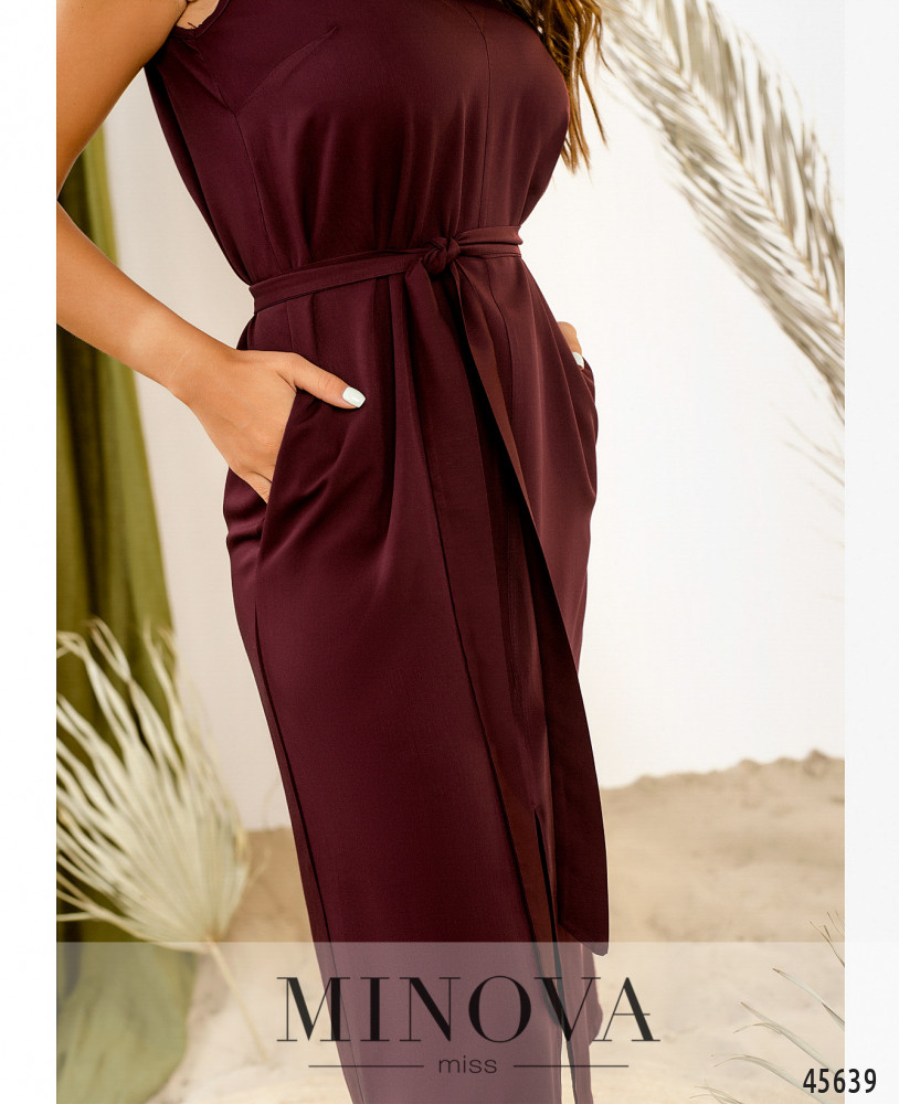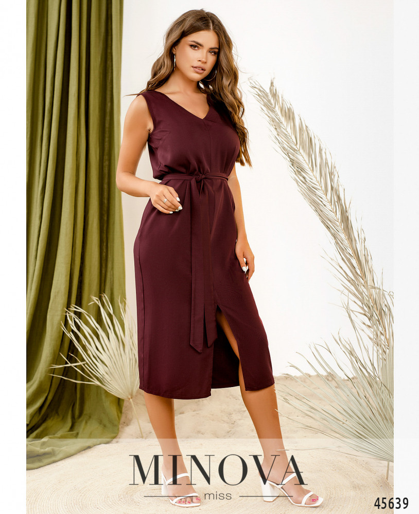Минималистичное однотонное платье прямого кроя с V-образным вырезом горловины впереди и на спинке подойдет для прогулок и встреч с друзьями, шоппинга и вечеринки. Модель дополнена изящной шлицей спереди и текстильным поясом в тон, который входит в комплект