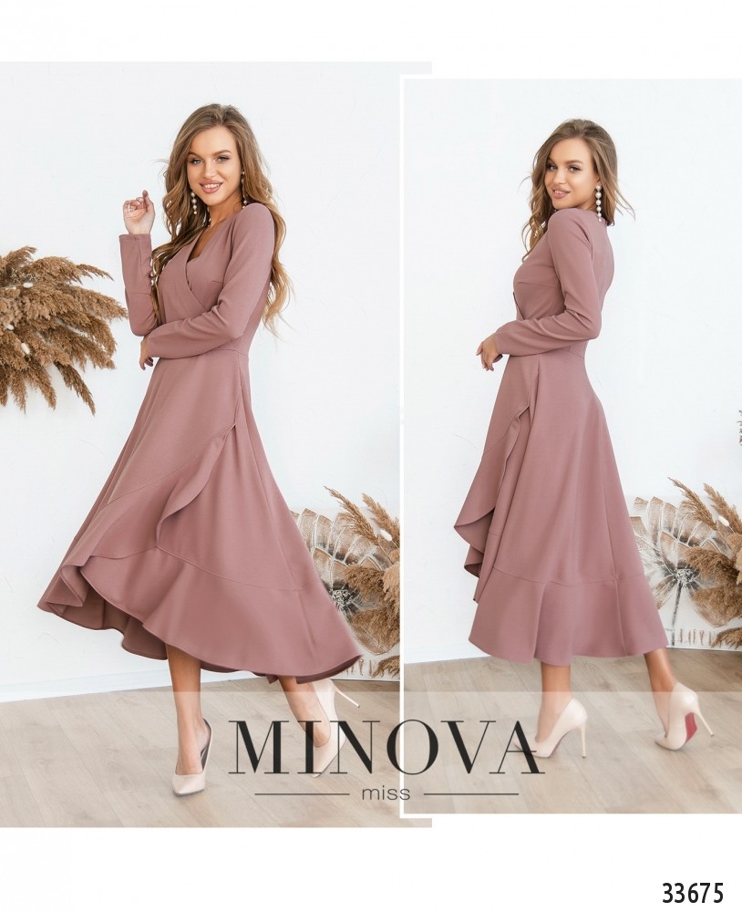 Платье в стиле танго от Minova – такое невероятно женственное и страстное! Особенно модель в глубоком красном оттенке. А нежно-розовый вариант смотрится очень элегантно и более по-девичьи. Платье на запАх: и лиф, и подол, на подоле крупные ниспадающие складки, разлетающиеся при ходьбе, силуэт притален. ЗапАх подшит. Застёгивается платье на вшитую по спине до талии «молнию», вырез декольте не слишком глубокий, V-образный. Рукава полной длины, без манжет. На груди – вытачки, карманов нет. Материал мягкий, приятный, слегка тянется. Доставайте свои самые изысканные туфли на каблуке, и образ будет завершён!