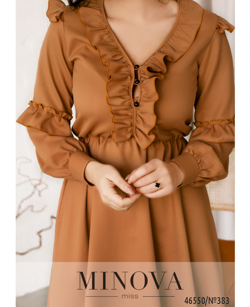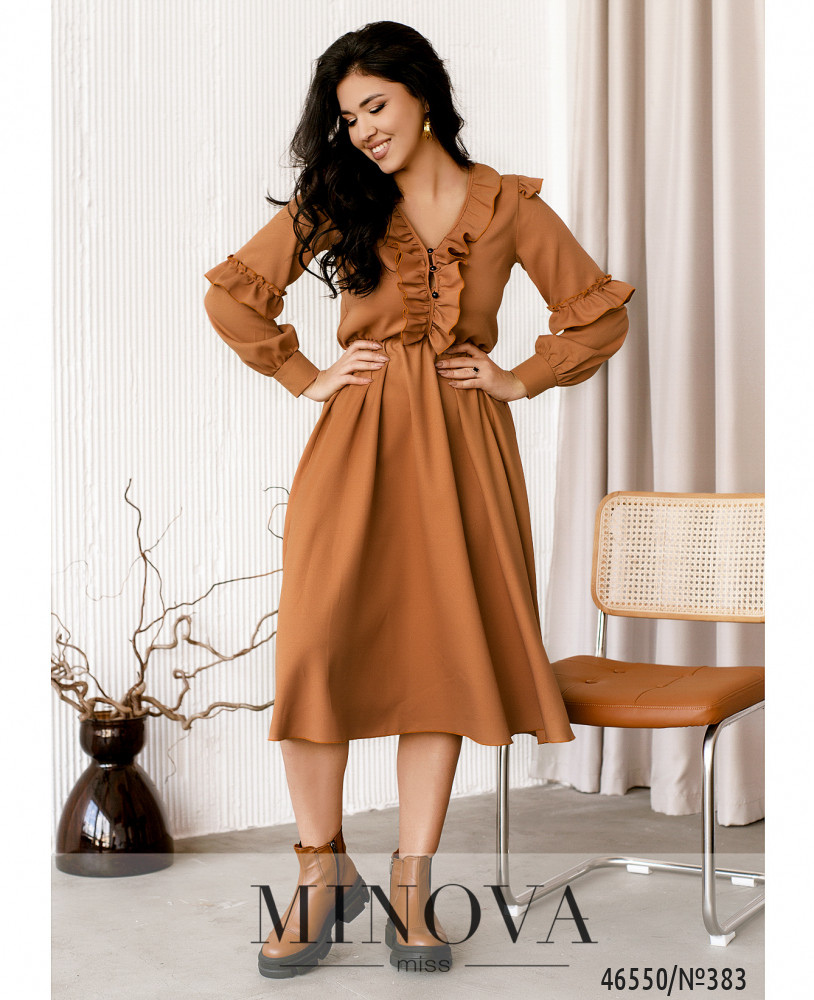 Изящное платье в романтическом стиле подойдет для прогулок и встреч с друзьями, шоппинга и вечеринки. Модель дополнена длинными рукавами с оборками и манжетами на пуговицах, а также резинкой, вшитой по линии талии. Платье застегивается спереди на пуговицах.