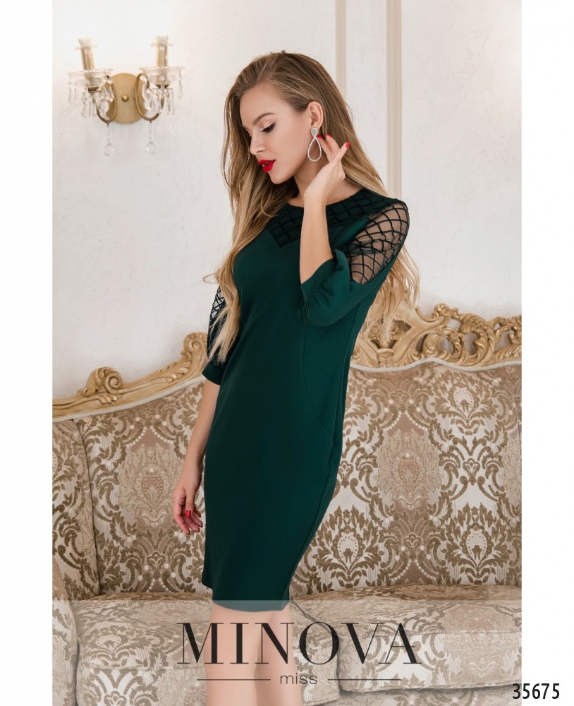 Очаровательное приталенное платье из нового каталога женской одежды от Minova станет прекрасным вариантом для торжественного или праздничного мероприятия. Платье из приятной к телу ткани, очень мягкой и лёгкой, лиф с вырезом «фигурным каре», внешняя сторона рукавов и верх лифа – из тонкого шифона с бархатными диагональными квадратиками. Спинка полностью гладкая, по спине вшита потайная молния. Карманов нет. На груди – продольные вытачки, которые и делают силуэт более приталенным. На рукавах небольшие манжеты, фасон – удлинённый «фонарик». Платье будет хорошо смотреться на девушках с «яблочной» фигурой и типом «песочные часы». Вы можете выбирать яркие аксессуары в дополнение к образу – ремень, кулон или сумочку.