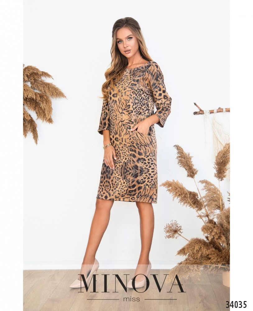Очаровательное платье из невероятно мягкой и приятной к телу ткани позволит выглядеть одновременно стильно и уютно. Особенно если выбрать клетчатый вариант. Другие модели в каталоге Minova выполнены в «звериной» раскраске: под леопарда или под змеиную кожу. В таких вариациях карманы накладные, а в клетчатом платье – врезные по бокам. Рукава длиной по локоть, силуэт прямой, свободный крой. Вырез горловины широкий, полукруглый, застёжек нет. Прекрасный выбор для повседневного гардероба, можно дополнить его однотонными аксессуарами и любимой обувью любого фасона.