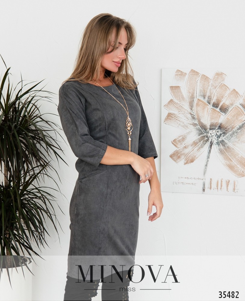 Свободный, чуть приталенный крой этого платья в сочетании с его минималистичностью позволит такой модели хорошо сидеть на любой фигуре! Платье из нового каталога Minova выполнено из очень мягкой и нежной, но при этом плотной ткани. От плеча до накладных карманов – продольные вытачки. Длина рукава ¾, без манжет. Вырез горловины широкий, полукруглый, длина подола – миди. Застёжек нет. Вы можете выбирать разные украшения и аксессуары, а также экспериментировать с обувью, создавая каждый раз новый образ, вписав это платье в свой базовый гардероб. Фасон будет удачно смотреться на любой фигуре. Украшение входит в комплект.