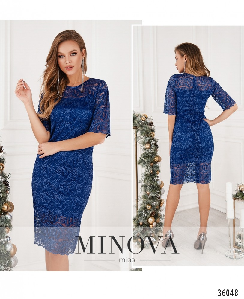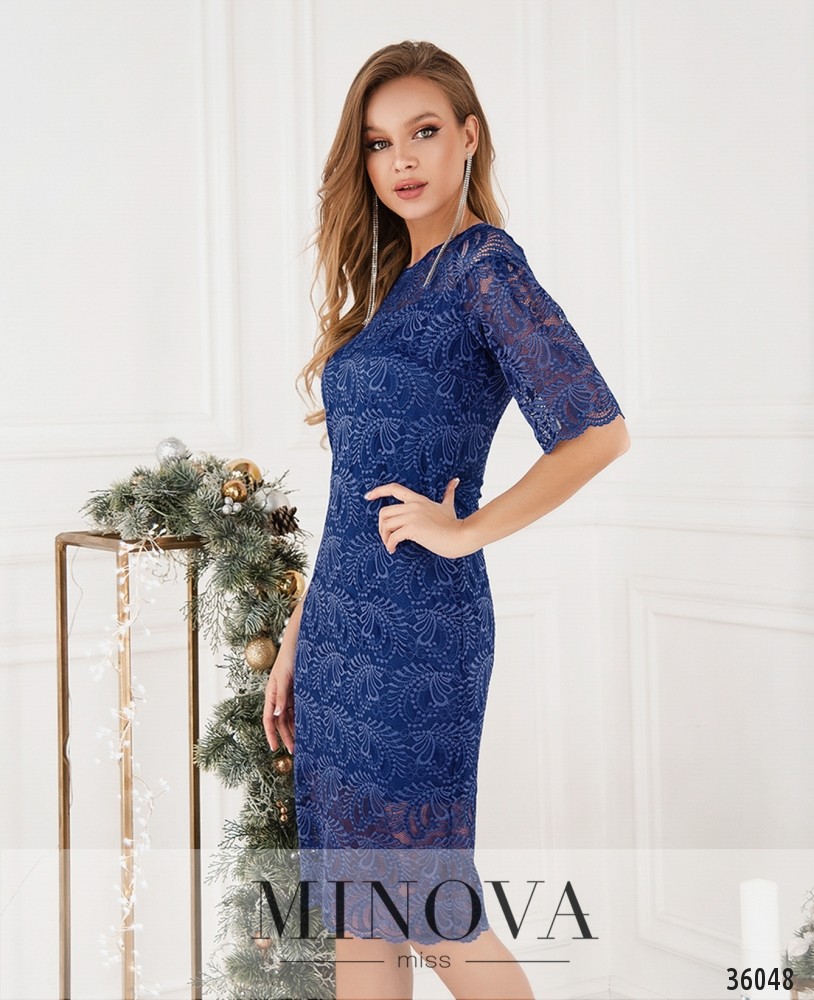 Нежное гипюровое платье из нового каталога Minova – приталенное, довольно длинное, с короткими рукавами. Пригодится и для праздника, и для создания праздничного настроения в будний день. Платье двуслойное: снизу подкладка, которая не просвечивает, а рукава и верх лифа в районе плеч – без подкладки. Карманов нет, на груди – небольшие вытачки. Застёжка – вшитая по спинке змейка. Платье стоит дополнить интересными однотонными или блестящими аксессуарами.