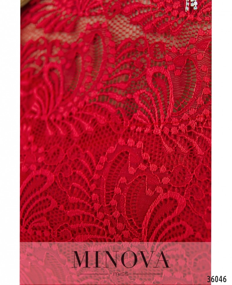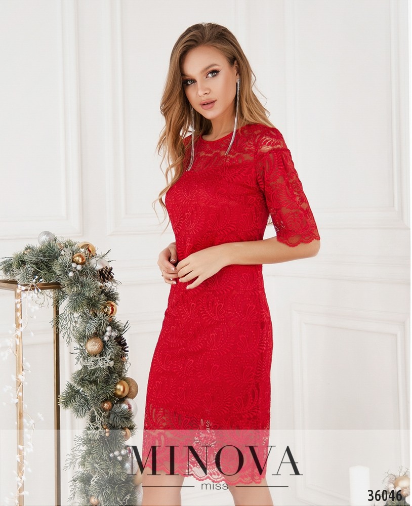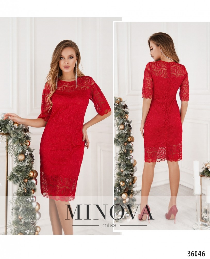 Нежное гипюровое платье из нового каталога Minova – приталенное, довольно длинное, с короткими рукавами. Пригодится и для праздника, и для создания праздничного настроения в будний день. Платье двуслойное: снизу подкладка, которая не просвечивает, а рукава и верх лифа в районе плеч – без подкладки. Карманов нет, на груди – небольшие вытачки. Застёжка – вшитая по спинке змейка. Платье стоит дополнить интересными однотонными или блестящими аксессуарами.