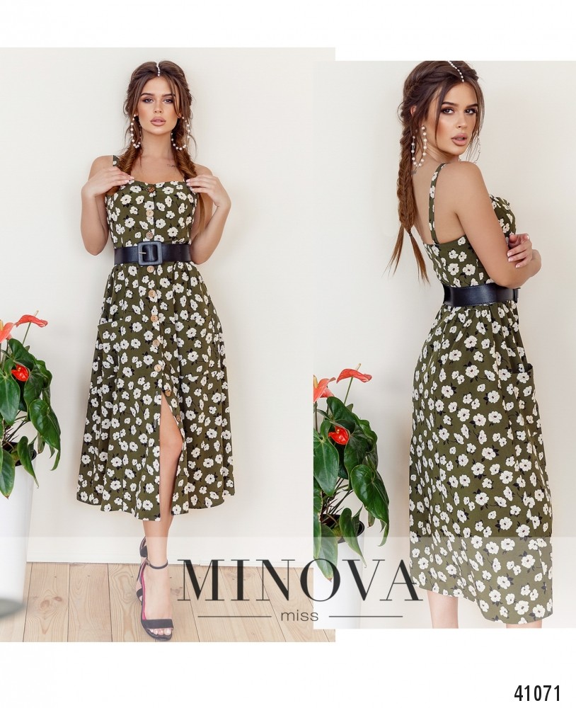Привлекательное и романтичное платье с накладными карманами по бокам, застёгивается на ряд пуговиц спереди на планке, бретели широкие, мягкие. По бокам присобрано на талии.