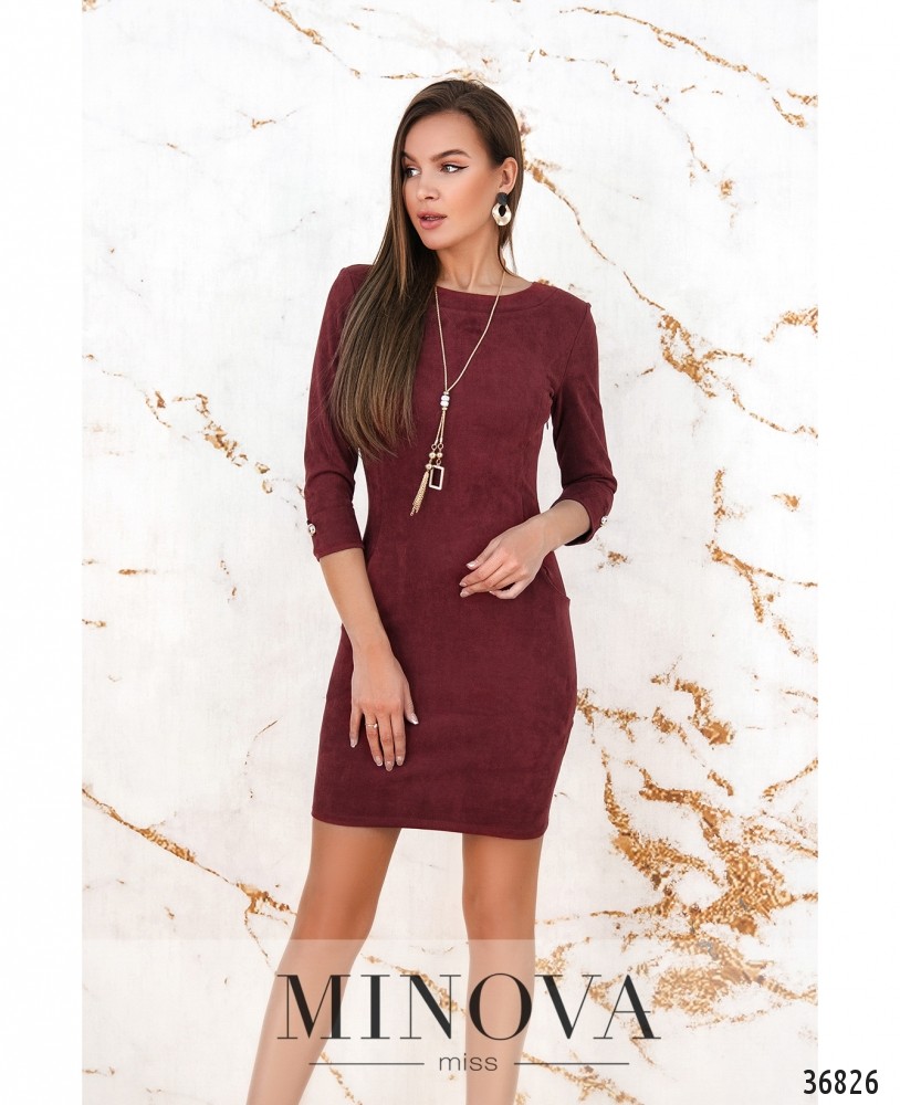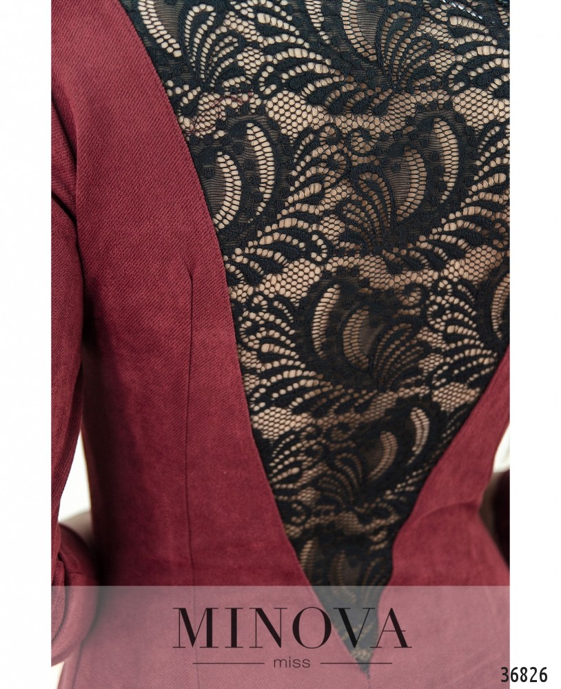 Очень аккуратное, стильное приталенное платье из мягкой плотной ткани – в новом каталоге женской одежды от Minova. Платье с полукруглым вырезом горловины и двумя накладными кармашками по бокам. Сзади на спинке – большая V-образная вставка кружева. Рукава длиной ¾, с небольшими манжетами, на манжетах круглые декоративные пуговки на ножке. Застёжек на платье нет. В комплекте прилагается длинная подвеска. Платье будет хорошо сочетаться с обувью на каблуке, лучше всего будет смотреться на фигуре типа «песочные часы», но гармонично сядет на любую фигуру. Украшение входит в комплект.