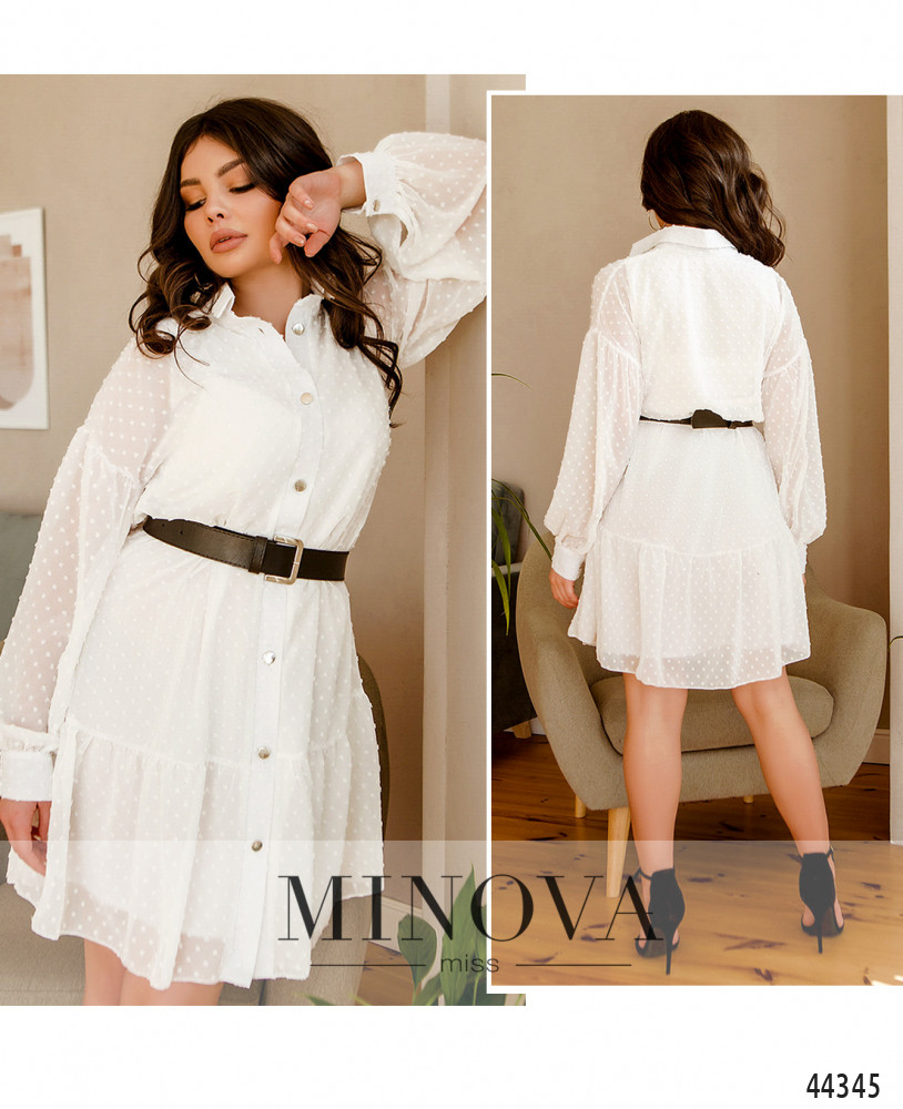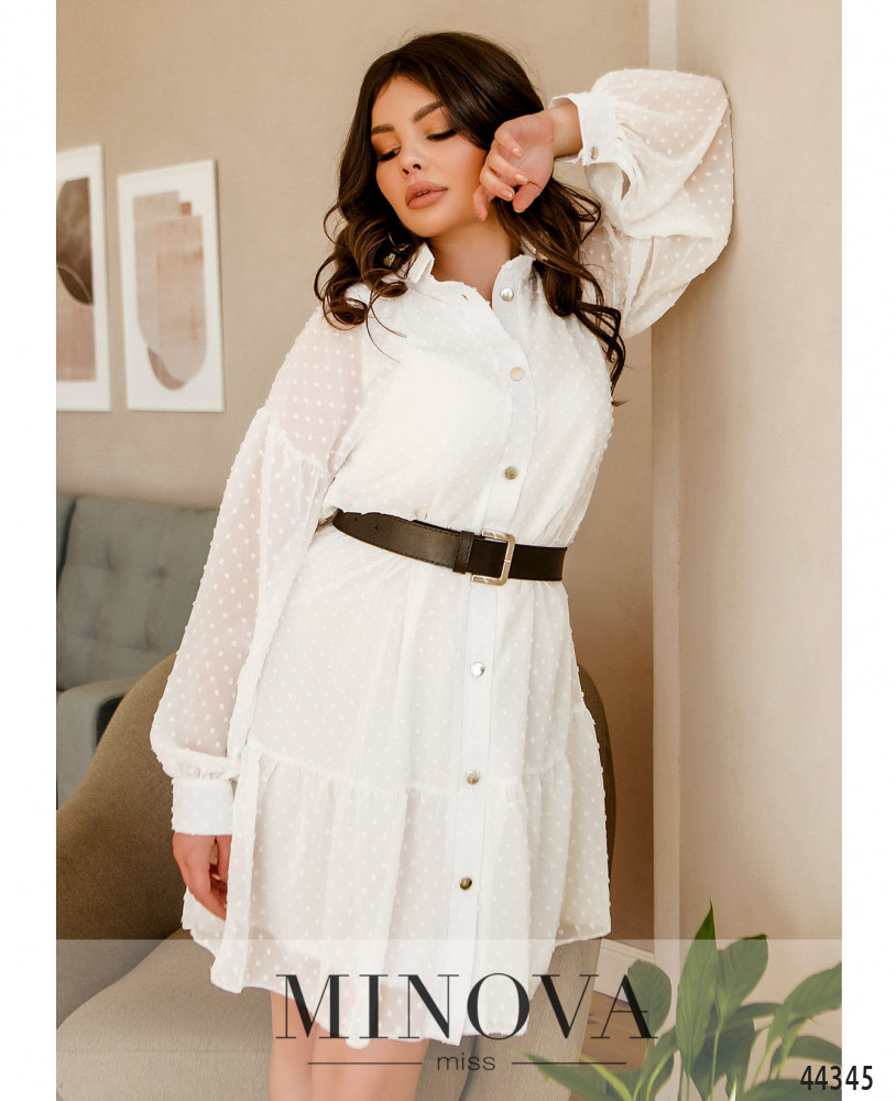 Романтичное платье с отложным воротничком и рядом пуговиц спереди на планке. Рукава с манжетами, на манжетах по одной пуговице. Рукав со спущенной линией плеча, к манжету зауженный. Под полупрозрачным верхним слоем - мягкая подкладка. Карманов нет, на подоле оборки.