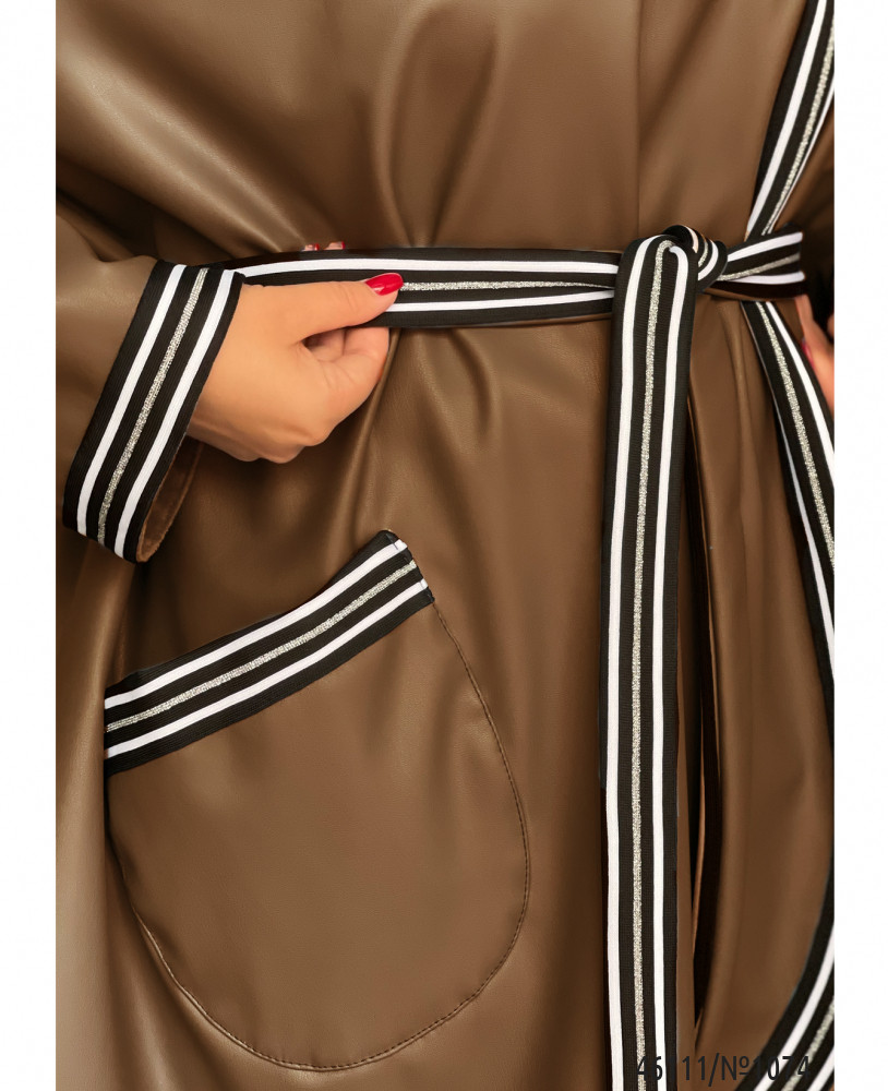 Легкая куртка без подкладки создает не только красоту, уверенность и комфорт, но и подчеркивает ваш индивидуальный стиль. Модель застегивается на одну кнопку на шее, а также крепится на талии с помощью текстильного пояса, который входит в комплект. Куртка дополнена одним накладным карманом и декоративной контрастной отделкой