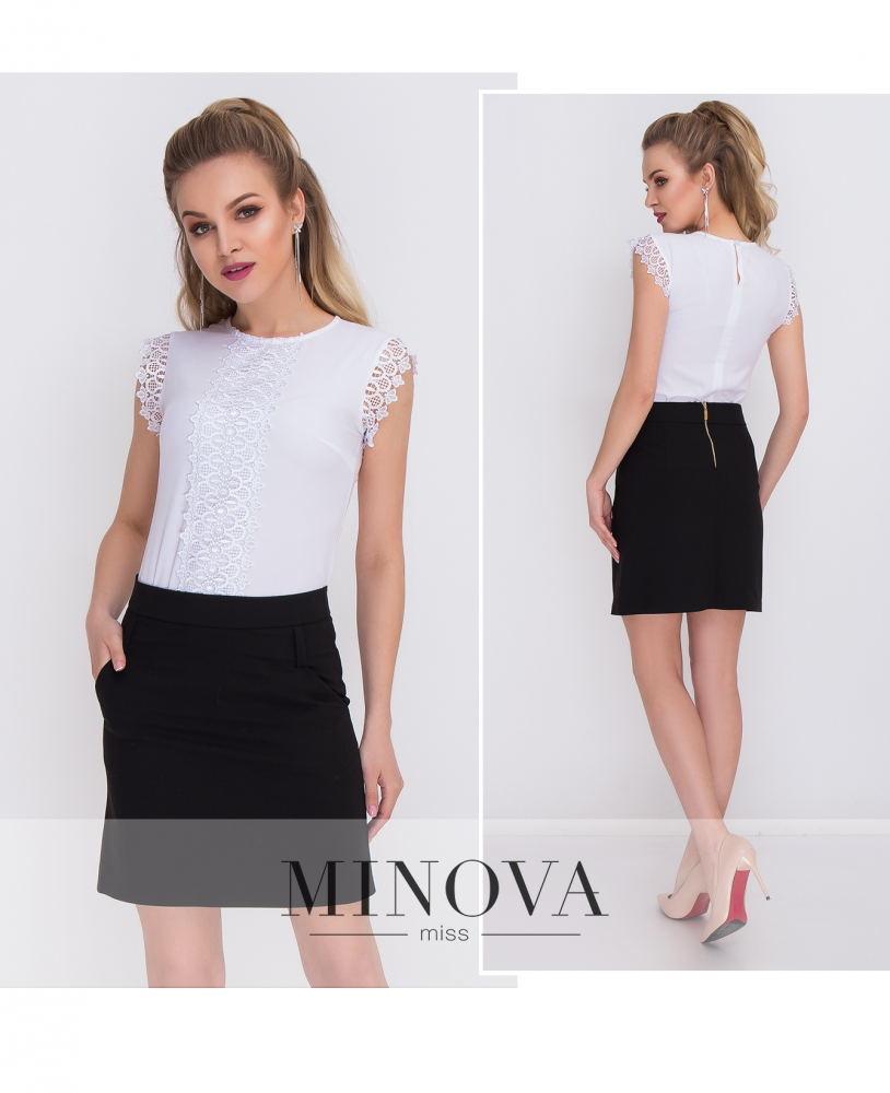 Юбка-мини на средней посадке с карманами. Лицевая сторона дополнена шлевками. На спинке юбка застегивается на молнию.