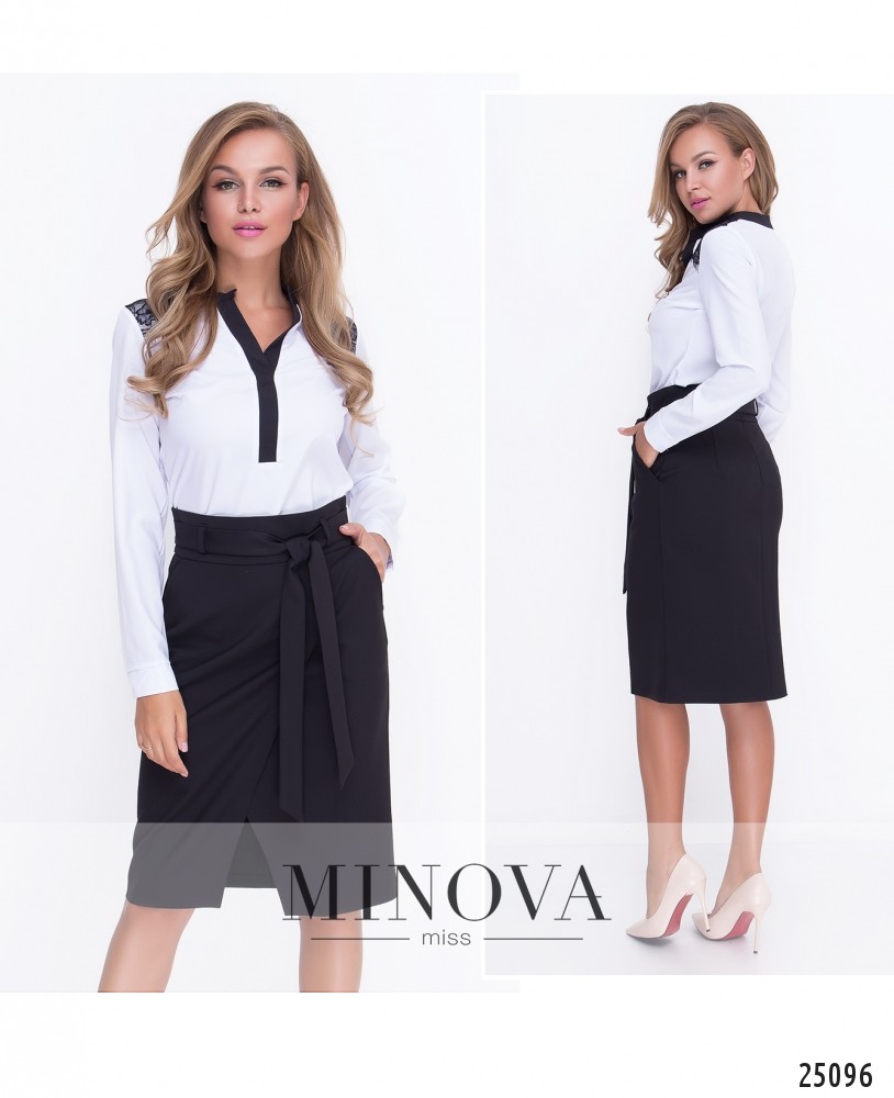 Элегантная юбка с фальшивим запахом и карманами. Посадка на талии со съемным поясом. Запах красиво открывает ножки. На спинке застегивается изделие на скрытую молнию.