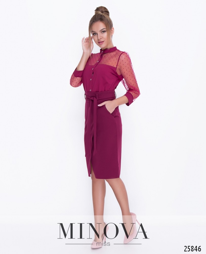 Элегантная юбка с фальшивим запахом и карманами. Посадка на талии со съемным поясом. Запах красиво открывает ножки. На спинке застегивается изделие на скрытую молнию.