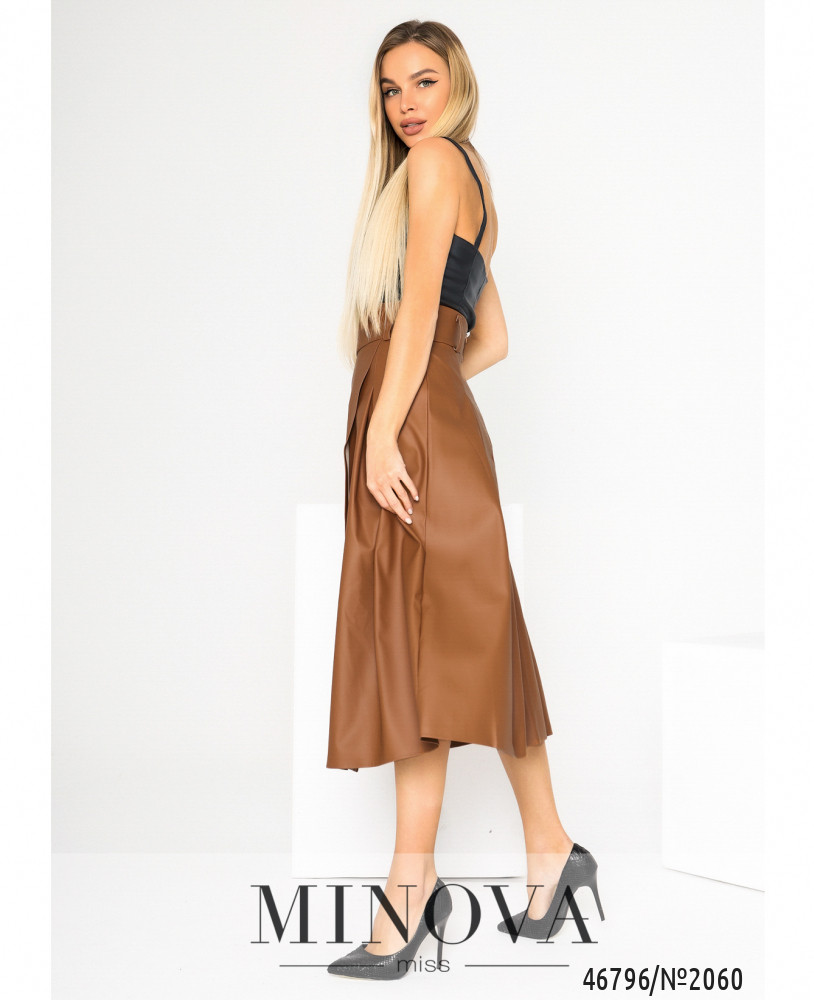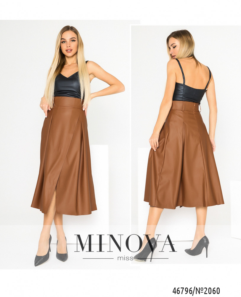 Стильная расклешённая юбка, подшитая на запАх, ткань на талии спереди и сзади присобрана. Застёгивается на молнию, вшитую по спинке. На поясе - шлейки для ремня. Карманов нет. Пояс НЕ входит в комплект.