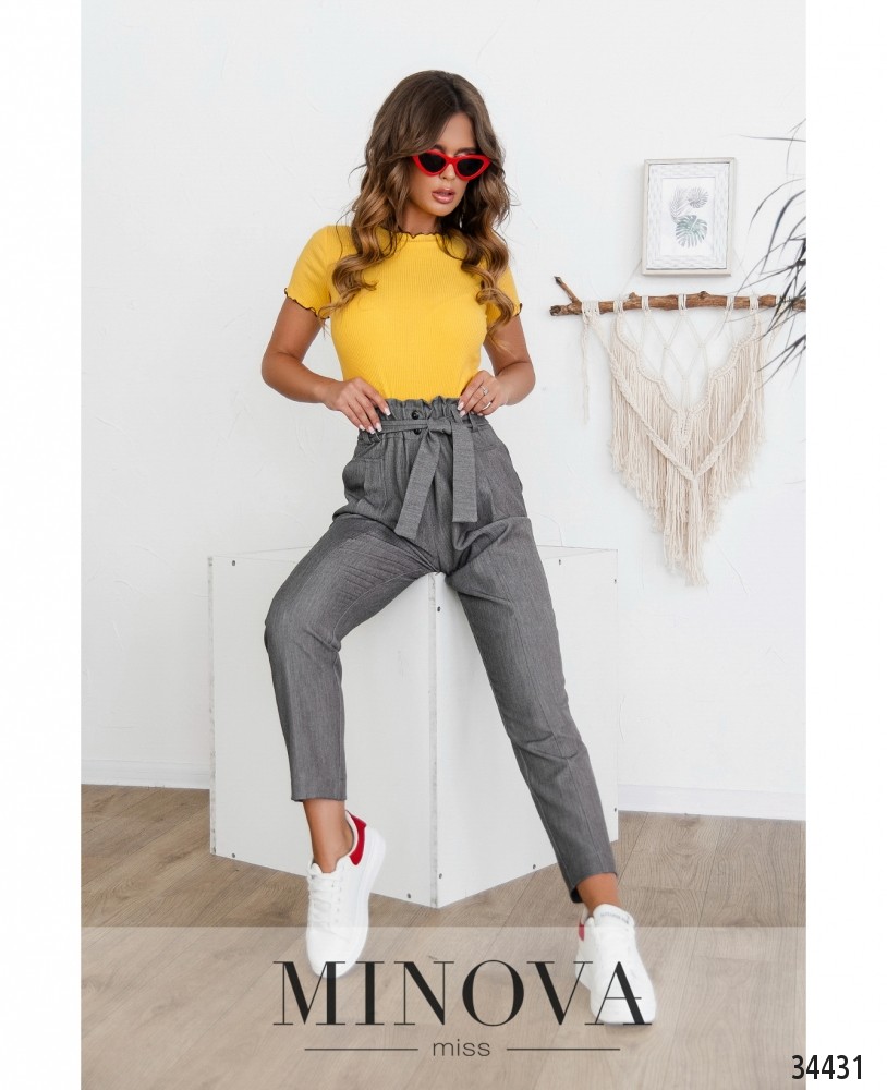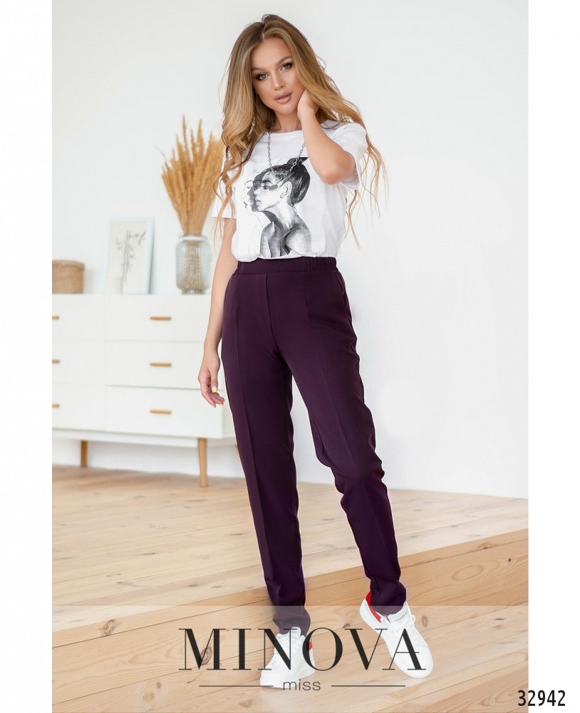 Очень привлекательные прямые брюки классического кроя со «стрелочками» - в новом каталоге женской одежды от Minova. Брюки с высокой посадкой, в пояс вшита резинка, а сверху нашиты небольшие оборки; в наличии широкие шлейки, через которые пропущен пояс, идущий в комплекте. Таким образом ты можешь сделать силуэт более приталенным. По бокам – врезные карманы, по центру – декоративная ширинка. Можешь выбрать яркий красный вариант или более классические тёмные оттенки, и вписать эту модель брюк в свой базовый гардероб, ведь они отлично сочетаются с деловыми пиджаками и нарядными блузами!