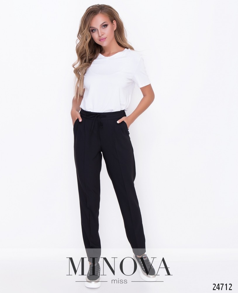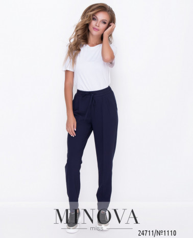 Брюки зауженного кроя на манжете идеально подойдут как офисный вариант, так и для повседневной носки. Изделие на средней посадке, пояс на резинке с кулиской. По бокам функционирующие карманы.