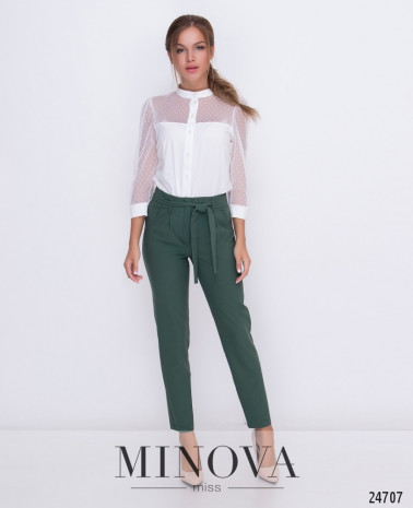 Брюки-бананы на высокой посадке с карманами и поясом с шлевками. Брюки застегивается на лицевой стороне на молнию и крючок.