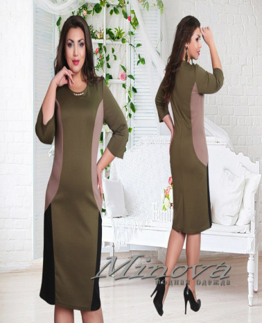 Платье №304-оливка+черный