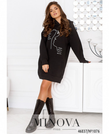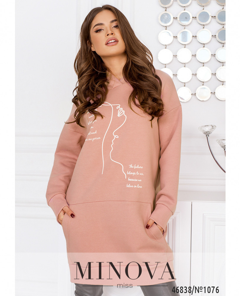 Повітряна ошатна туніка добре сідає по фігурі, незалежно від її особливостей. Двошарова модель лаконічного крою доповнена довгими рукавами з манжетами і яскравим принтом спереду.