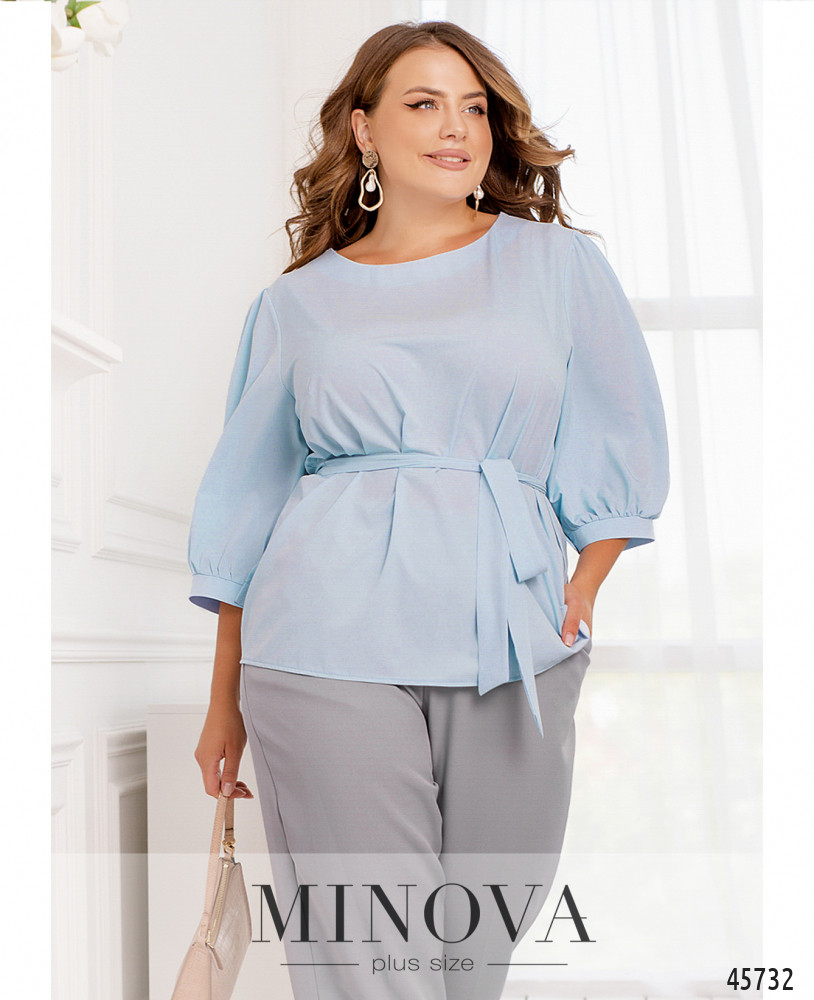 54-56 р-р: длина блузки 68см, длина рукава от плечевого шва 42см, обхват рукава 54см, ОГ - 116см, ОТ -118см, ОБ -124см.