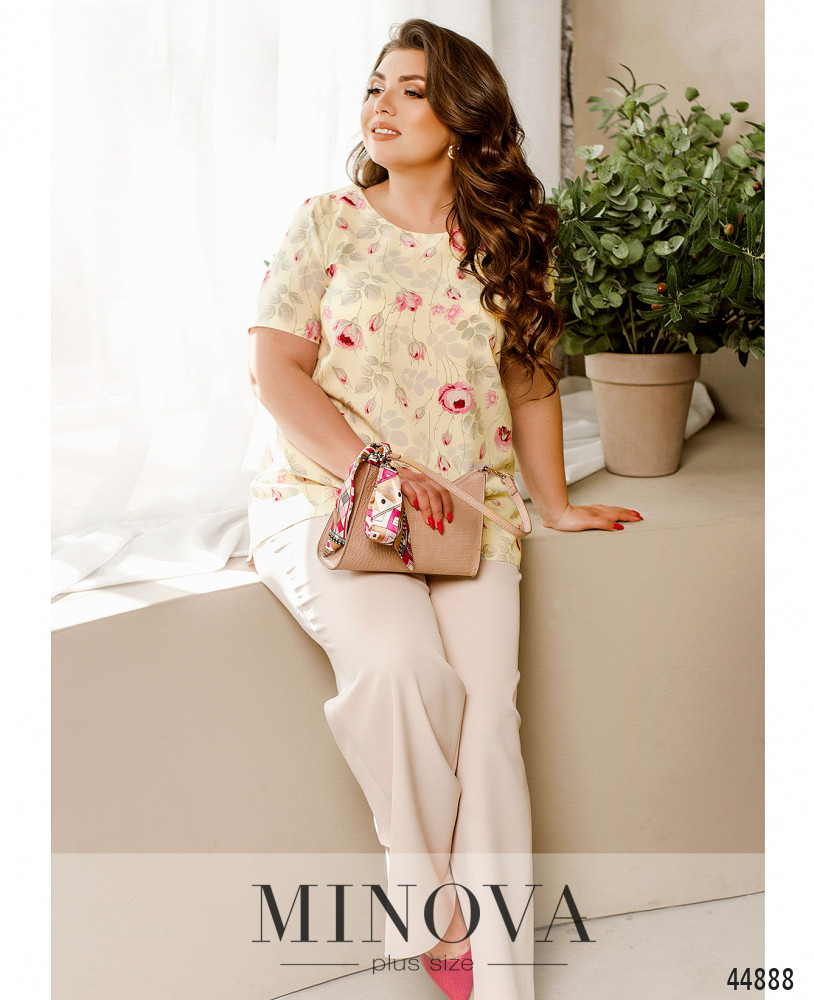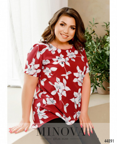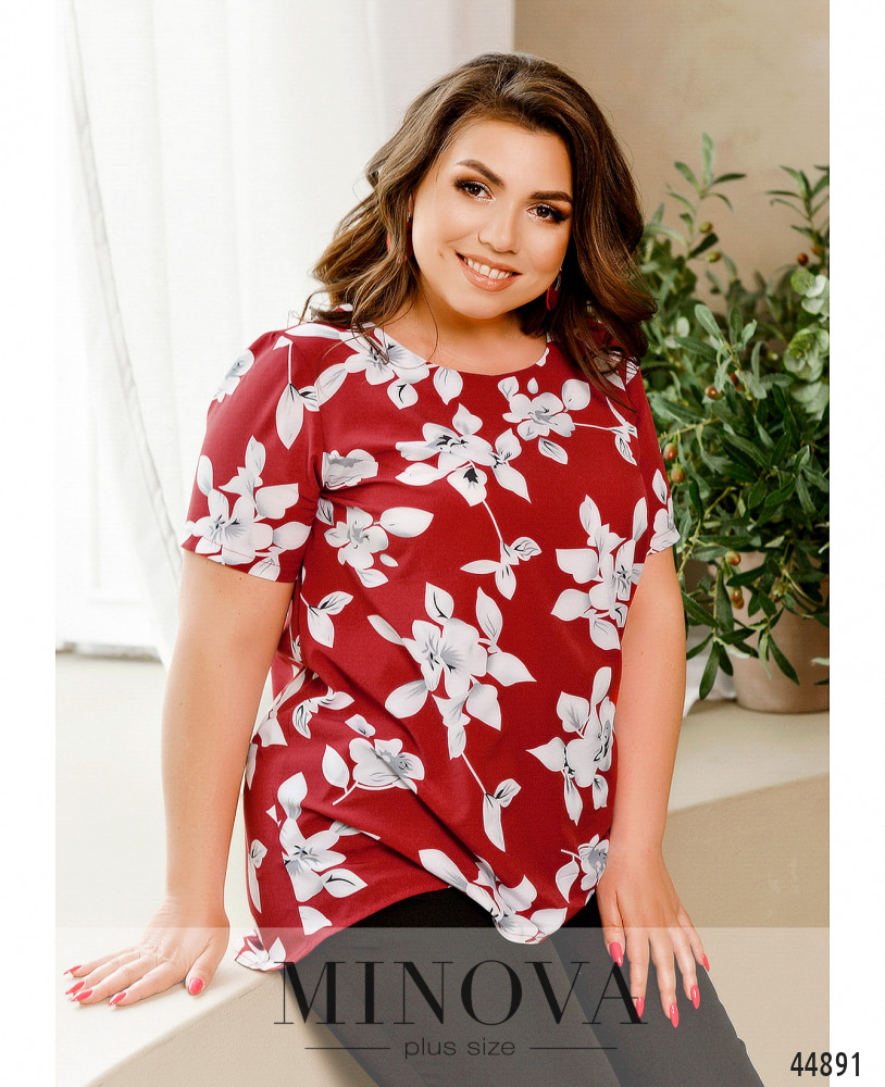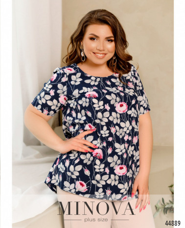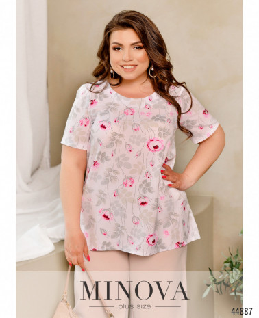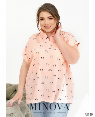 Легка повітряна блуза з коміром-стійкою і планкою без гудзиків спереду виглядає одночасно лаконічно і привабливо. Спущені короткі рукави з одворотами і грайливий принт додадуть родзинку в ваш образ.