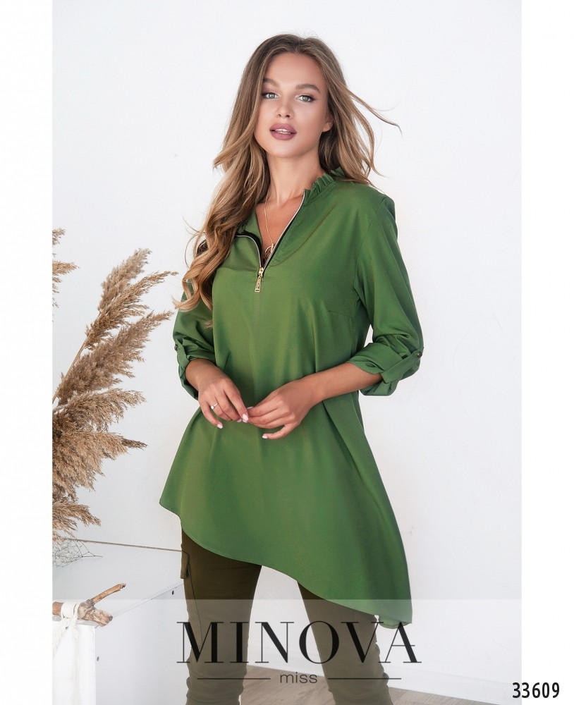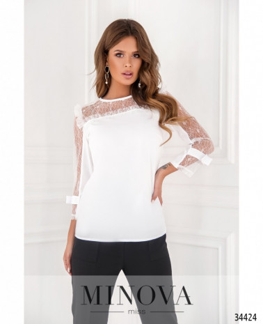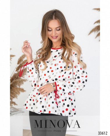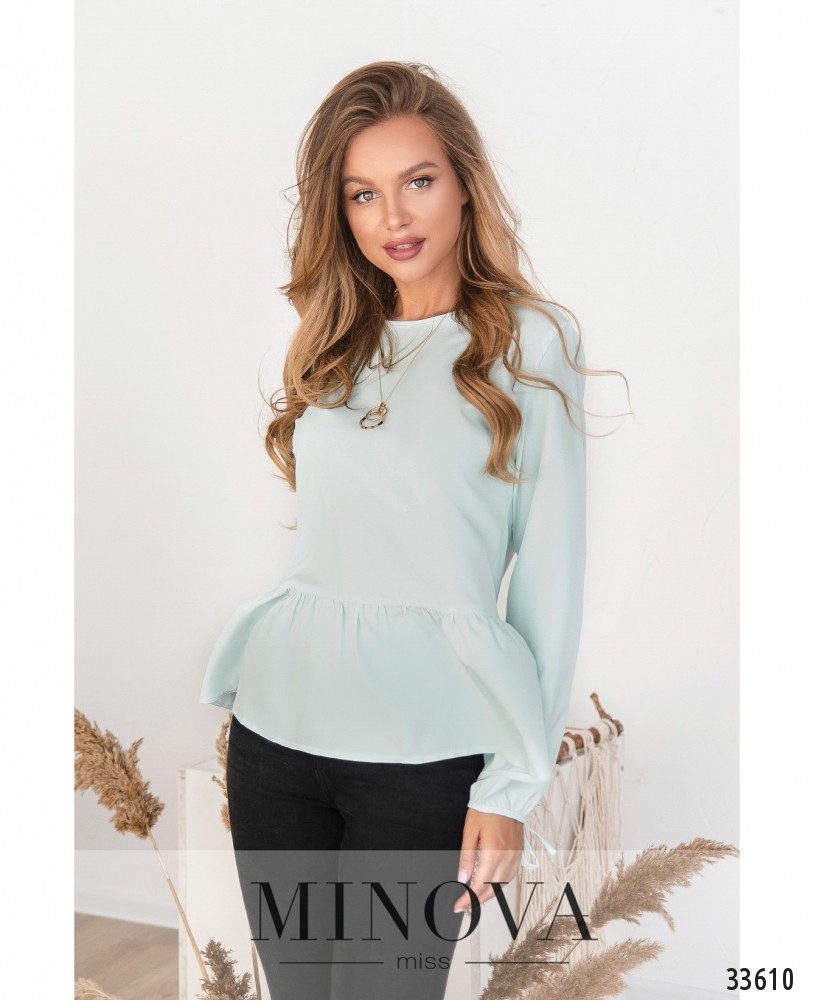 Пастельные тона дают возможность создавать романтичный, ненавязчивый образ. Minova предлагает три варианта лёгкой рубашки – светло-голубой, цвета кофе с молоком и в яркий разноцветный горошек. Блуза без карманов, застёжка – пуговка на шее сзади. Вырез горловины широкий, неглубокий, полукруглый. Рукава полной длины, завязываются на запястье на тесёмки. Рубашка А-силуэта, украшена по низу мягкими свободными оборками. На груди вытачки, карманов нет. Такая рубашка пригодится и для повседневного гардероба, и для не очень строгого офисного дресс-кода. Можно выбрать яркие украшения и дополнить образ джинсами или брюками.