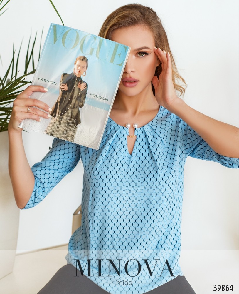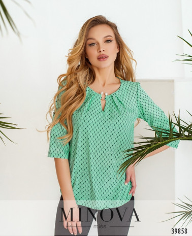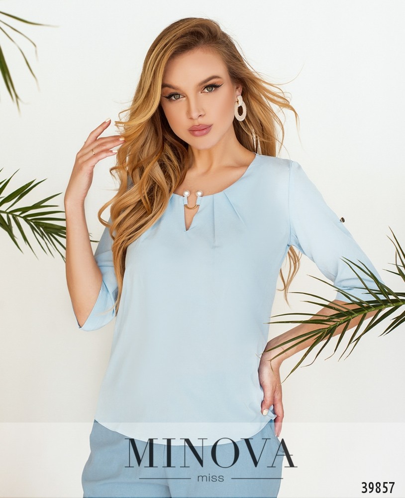Удобная рубашка с воротником-стоечкой, без застёжек и карманов, рукава регулируются на пуговицу и ленту, без манжет. На подоле по бокам небольшие разрезы.