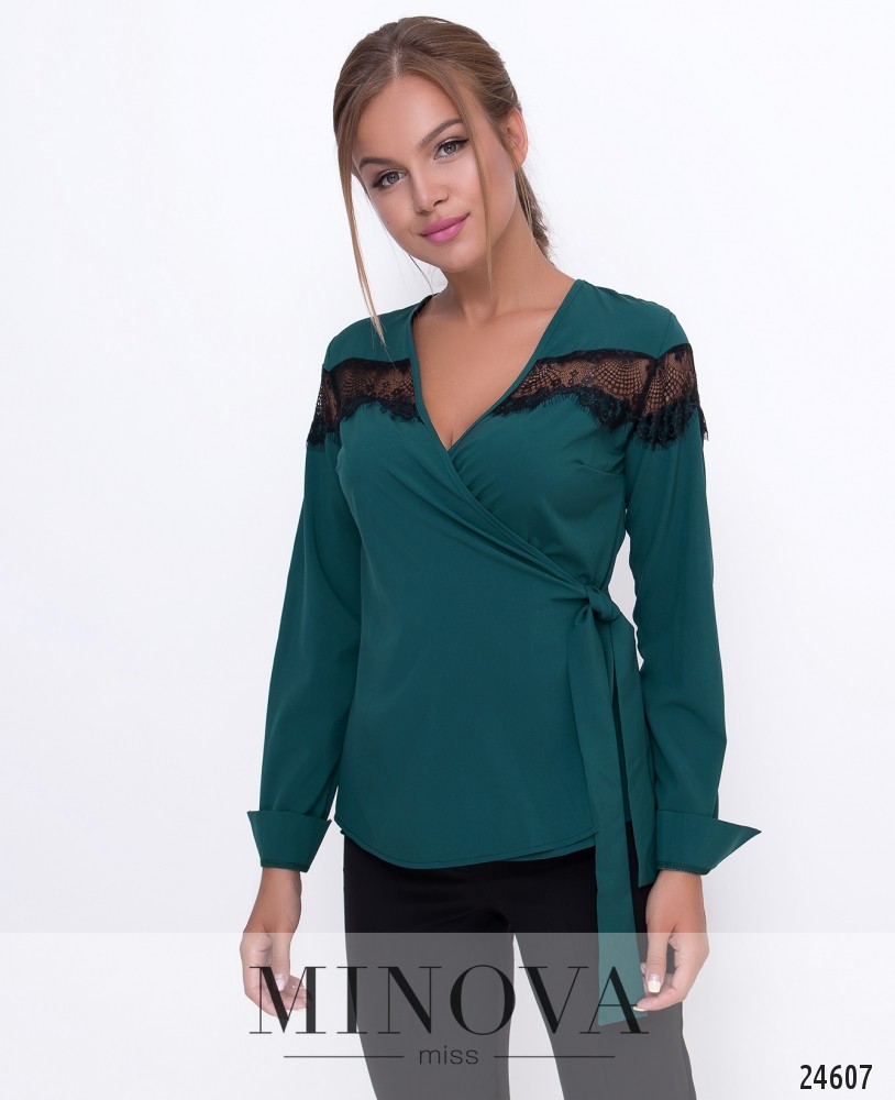 Атласная приталенная рубашка на пуговицах с короткими рукавами и контрастными вставками.
