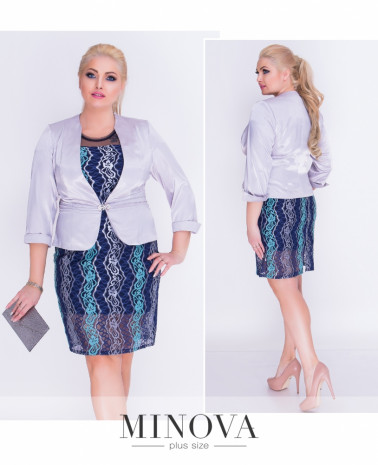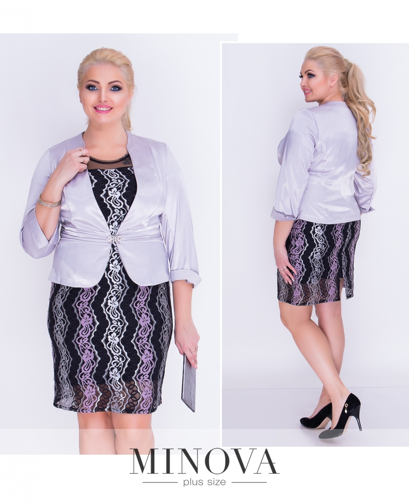 56 р-р.: Пиджак : длина изделия 60 см, длина рукава 44см, ОГ- 102см, ОТ-108см, ОБ - 116 см. Платье: длина изделия 100см, пройма 50см, ОГ - 106см, ОТ- 106см, ОБ-114 см.