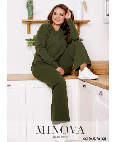 60-62 р-р: довжина брюк по внутрішньому шву 78см, довжина брюк по зовнішньому шву з урахуванням поясу 104см, ОТ - 92-124см, ОС -124см.