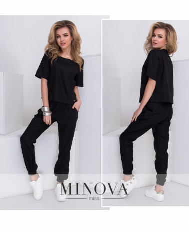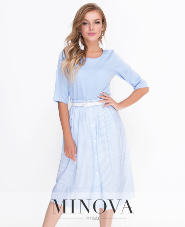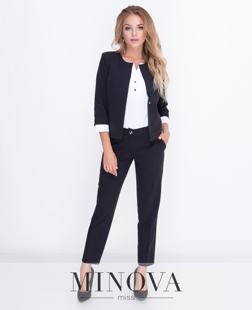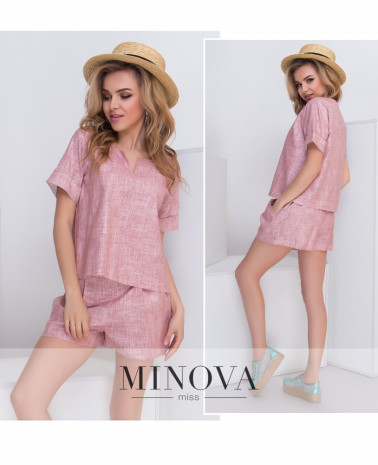 Стильный женственный костюм состоит из блузы прямого кроя и расклешенной юбки на функциональных пуговицах. Удлиненная блуза с круглым вырезом и рукавами ¾.
