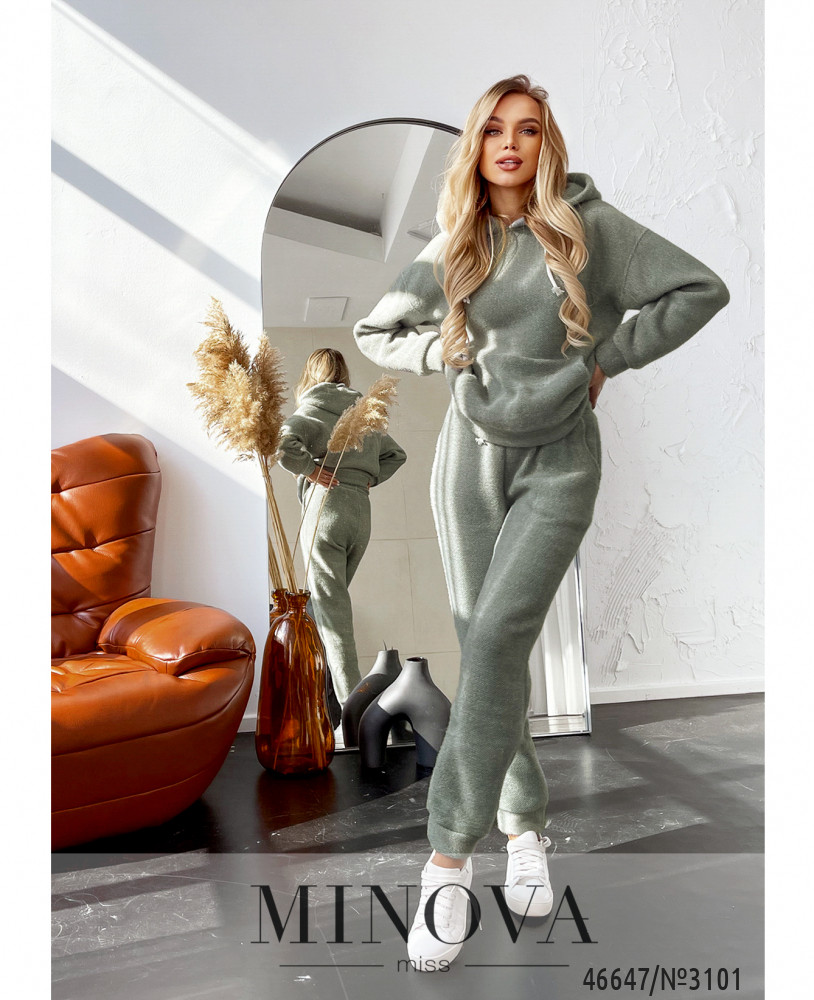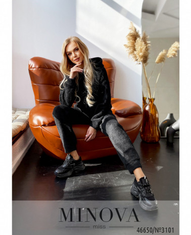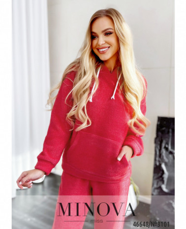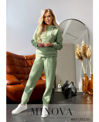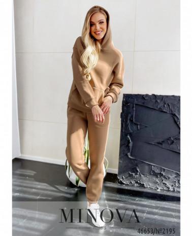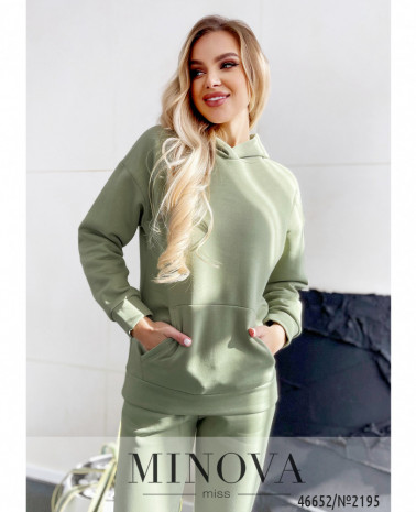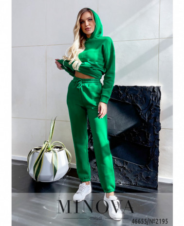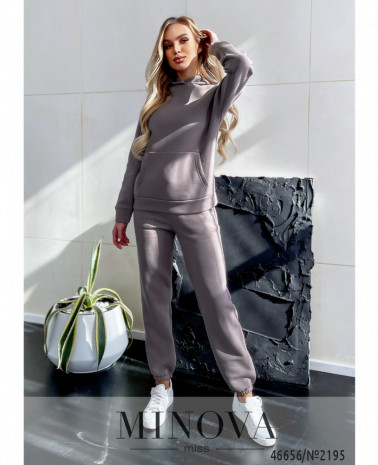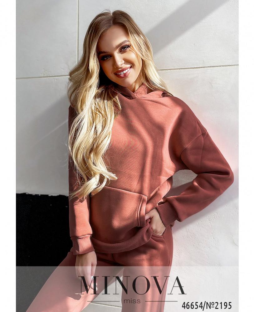 Стильний спортивний костюм, виконаний з еко-шкіри, може стати улюбленою річчю для жінки, яка цінує практичність і не забуває про модні тенденції. Мінімалістичні штани-джогери з кишенями в бічних швах і резинками, вшитими по лінії талії і по низу штанин, доповнює худі в тон з капюшоном, кишеня-кенгуру і манжети якого виконані з м'якого велюру.