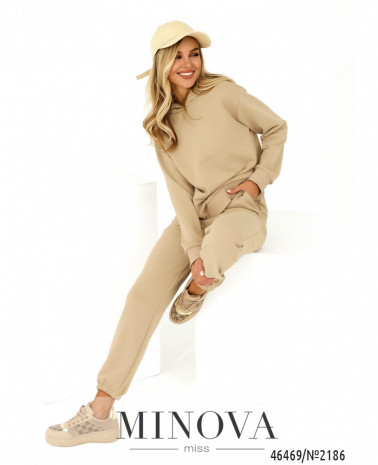 Мягкий минималистичный спортивный костюм отлично сочетается с кроссовками и большими джинсовыми куртками. В комплект входит однотонное худи с капюшоном и длинными рукавами с манжетами, а также лаконичные брюки-джоггеры с карманами и резинками, вставленными по линии талии и по низу штанин.