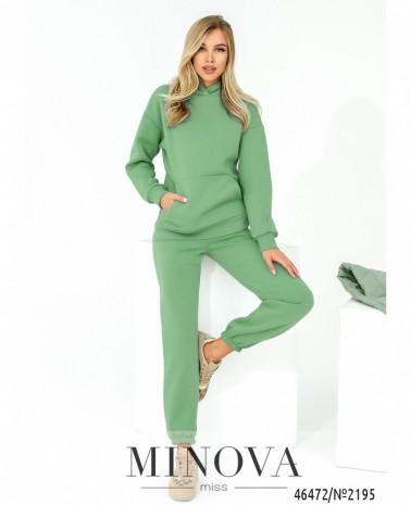 Монохромный яркий спортивный костюм привлекает внимание своей мягкостью и удобством. В комплект входят актуальные брюки-джоггеры с карманами и резинками, вставленными по линии талии и по низу штанин, а также лаконичное худи с капюшоном, большим карманом спереди и рукавами с приспущенной линией плеч.