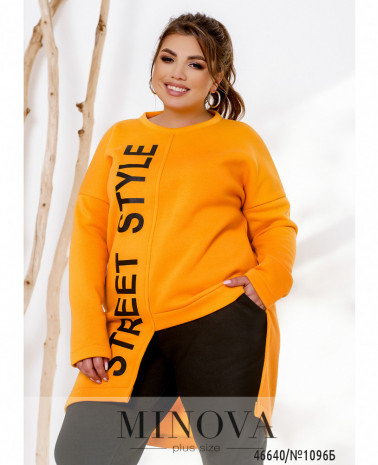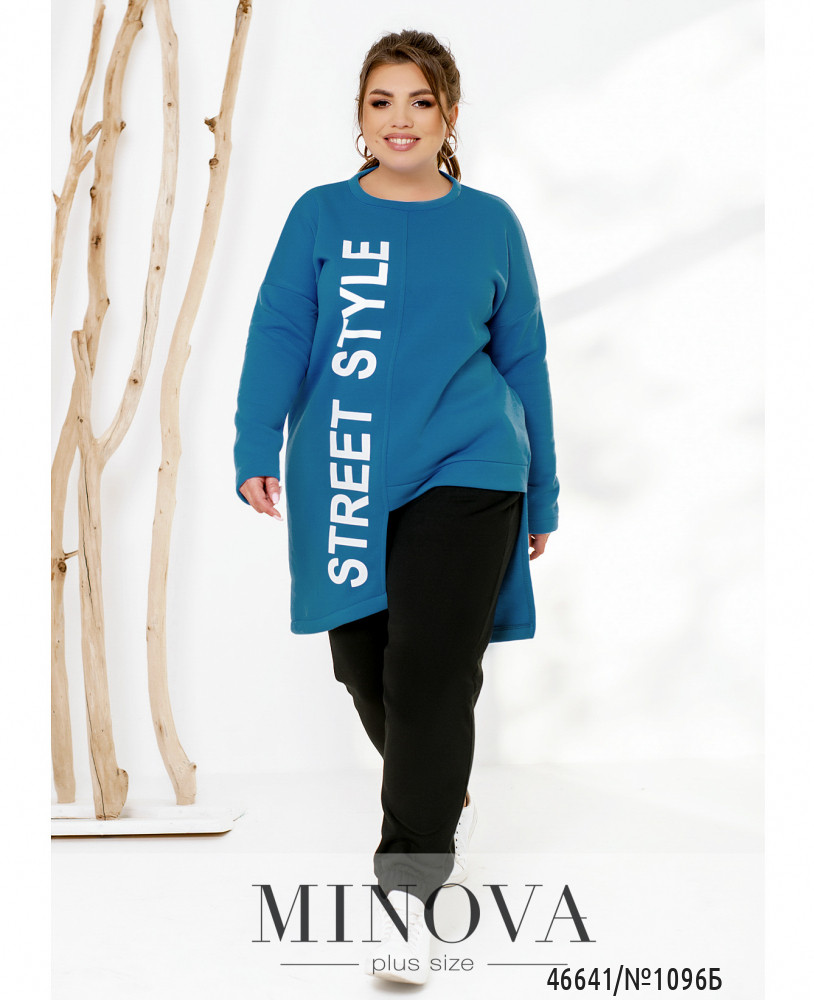 Контрастный спортивный костюм, дополненный принтами, отлично сочетается с кроссовками и объемными джинсовыми куртками. В комплект входят лаконичные брюки-джоггеры с карманами в боковых швах и резинками, вшитыми по линии талии и по низу штанин, а также удлиненная туника-свитшот с ассиметричным низом, дополненная длинными рукавами с приспущенной линией плеч. Пояс НЕ входит в комплект.