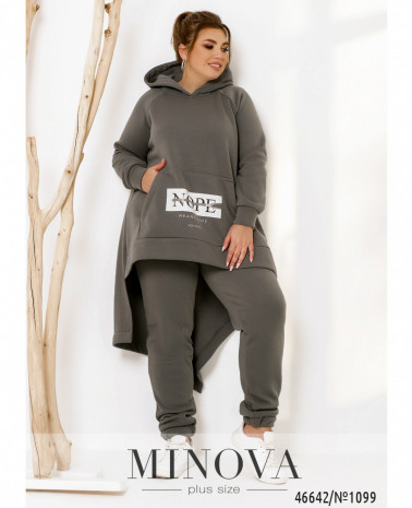 Яркий спортивный костюм нестандартного кроя не только дарит уверенность и комфорт, но и подчеркивает индивидуальный стиль. Минималистичные брюки-джоггеры с карманами в боковых швах и резинками, вшитыми по линии талии и по низу штанин, идеально дополняет необычная свободная туника с капюшоном и карманом-кенгуру, привлекающая внимание в первую очередь ассиметричным подолом. Пояс НЕ входит в комплект.