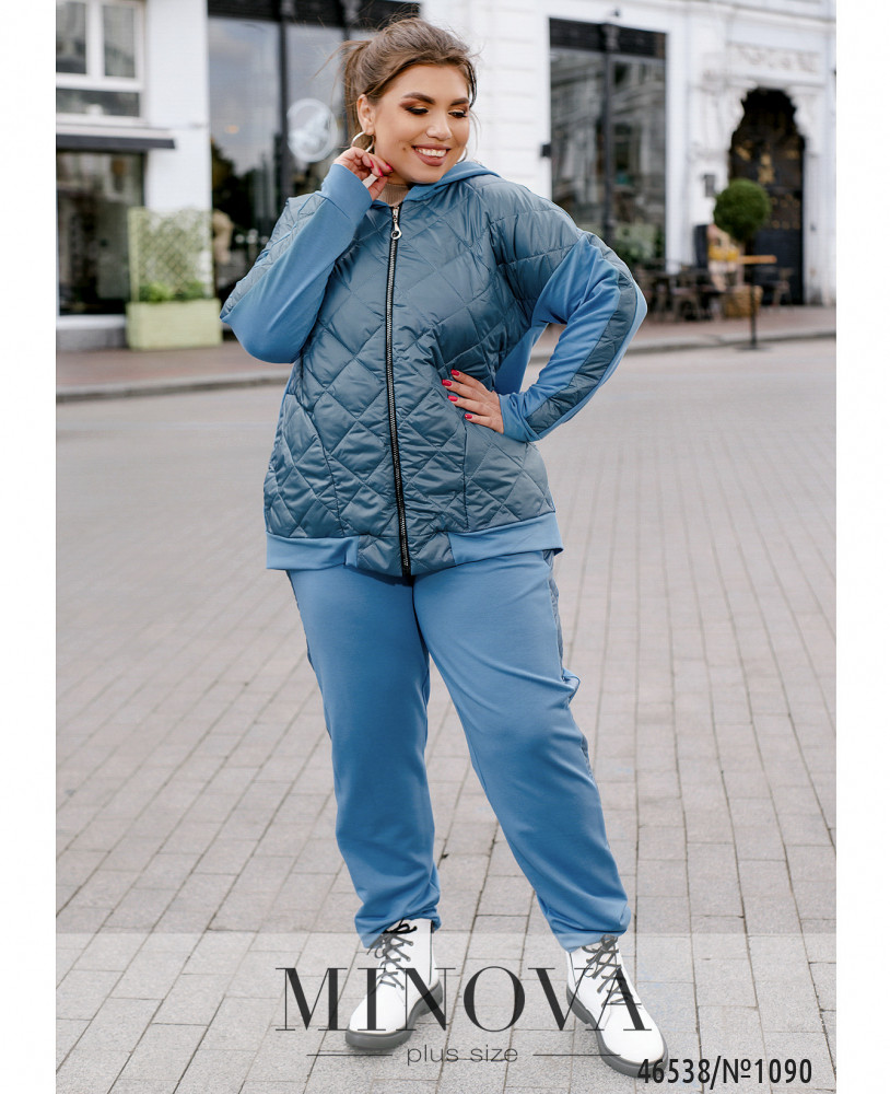 Монохромный утепленный спортивный костюм — идеальный вариант для любителей комфортного минимализма. В комплект входят лаконичные брюки-джоггеры на резинке с карманами в боковых швах, а также удлиненная кофта-туника на змейке с капюшоном и карманами, изюминкой которой являются рукава с манжетами и приспущенной линией плеч и ассиметричный низ, удлиненный по спинке.