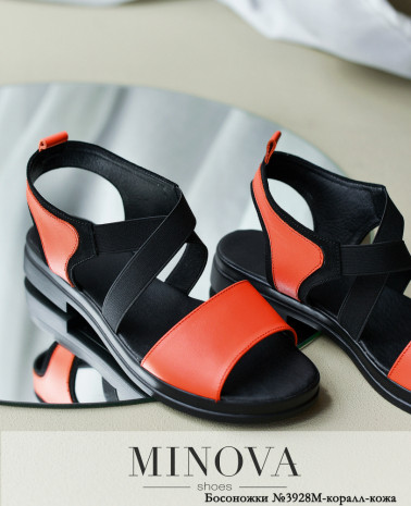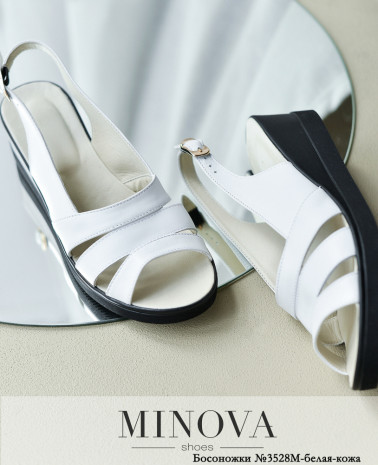 Оригинальные кожаные босоножки с застёжкой на пояске, охватывающем щиколотку. На подъёме - декоративная широкая вставка с отверстиями, укреплёнными люверсами. Подошва плотная, с декоративным принтом на кантике. Также на подъёме продольный поясок, соединяющий две части. Протектор с круглой неглубокой рельефностью.