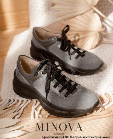 • Кроcсовки №1381R-серая-замша-серая-кожа