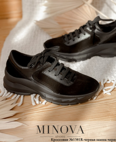 • Кроcсовки №1381R-черная-замша-черная -кожа
