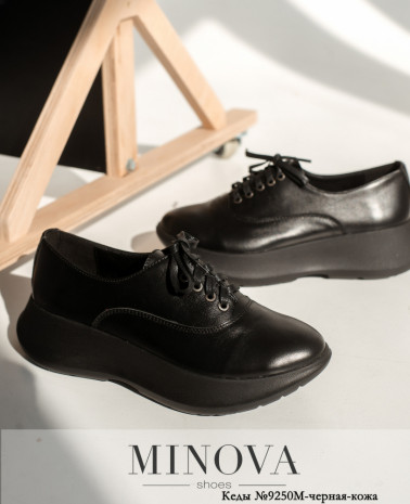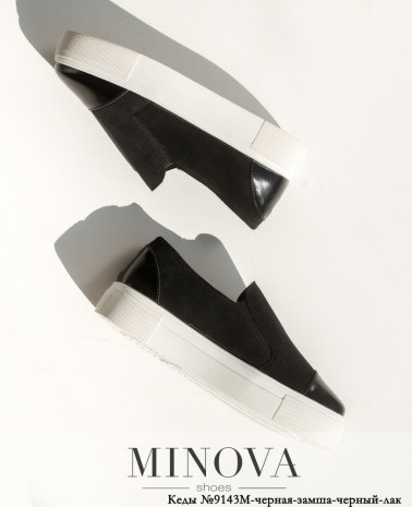 • Кеды №9143-1М-черная-кожа-черный-лак