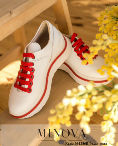 Елегантні кеди-мокасини з натуральної шкіри, без застібок, через язичок перекинуто декоративний ремінець з розрізом. Підошва щільна, гнучка, висока