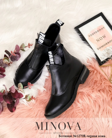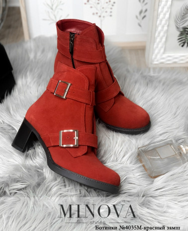 Строгие, минималистичные, но очень стильные ботинки из прекрасной натуральной кожи – гладкой, замшевой или лакированной, представлены в каталоге Minova в нескольких цветовых решениях. Так вы сможете выбрать модель, идеальную для вашего гардероба. Обувь однотонная, без инородных вставок. На подъёме располагается рабочая шнуровка с тонкими шнурками, без металлических колечек (люверсов) на отверстиях. Под шнуровкой – плотный язычок для большей герметичности. Внутри ботинки утеплены цигейкой. Каблук средней высоты, квадратный, удобный для долгих пеших прогулок, протектор мелкоребристый. Сзади сверху подшита петелька. Такие ботинки удачно будут сочетаться и с юбкой, и с брюками.