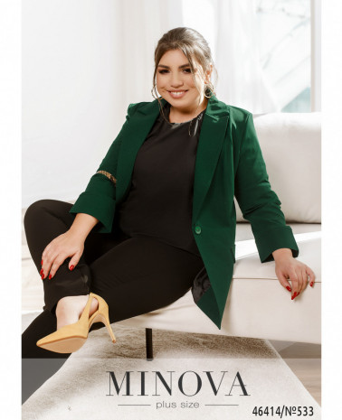 54 р-р: довжина піджака 71см, довжина рукава від горловини 68см, довжина рукава від плечового шва 53см, обхват рукава 45см, ОГ - 110см, ОТ -104см, OC -116см.