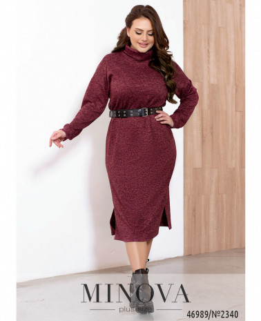 Лаконічна сукня-міді, що виконана з м'якої ангорової тканини, стане ідеальним доповненням вашого базового зимового гардеробу. Модель прямого силуету доповнена коміром-хомутом, довгими рукавами з приспущеною лінією плечей і невеликими розрізами з боків подолу.