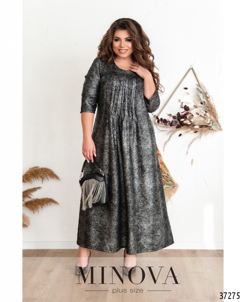 60 р-р: длина платья 107см, длина рукава от плечевого шва 47см, ОГ - 120см, ОТ -106см, ОБ -128см.