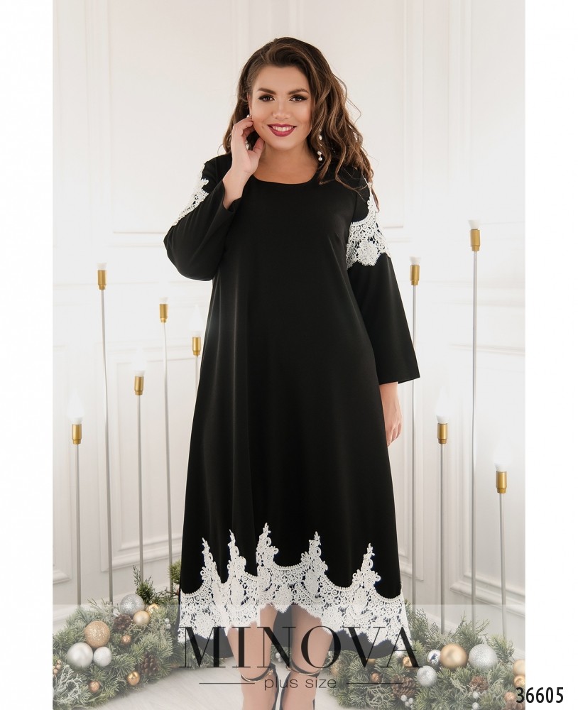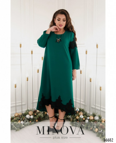 Такое мягкое и ажурное кружево, такая приятная подкладка! Да и в общем платье производит очень приятное впечатление. Minova представляет новую модель платья батал с подшитой сверху кружевной накидкой, которая доходит до талии и оканчивается более плотным манжетом. Рукава полной длины, полностью из кружева с небольшими манжетами без пуговиц. На платье и на накидке на груди вытачки. На гружеве на левой стороне груди нашит небольшой накладной кармашек из гладкой ткани, украшенный очаровательной стрекозой. По бокам – врезные карманы. Платье с асимметричным подолом, по спинке чуть длиннее, вырез горловины широкий, полукруглый, застёжек нет. Прекрасный выбор для праздника! Украшение входит в комплект.