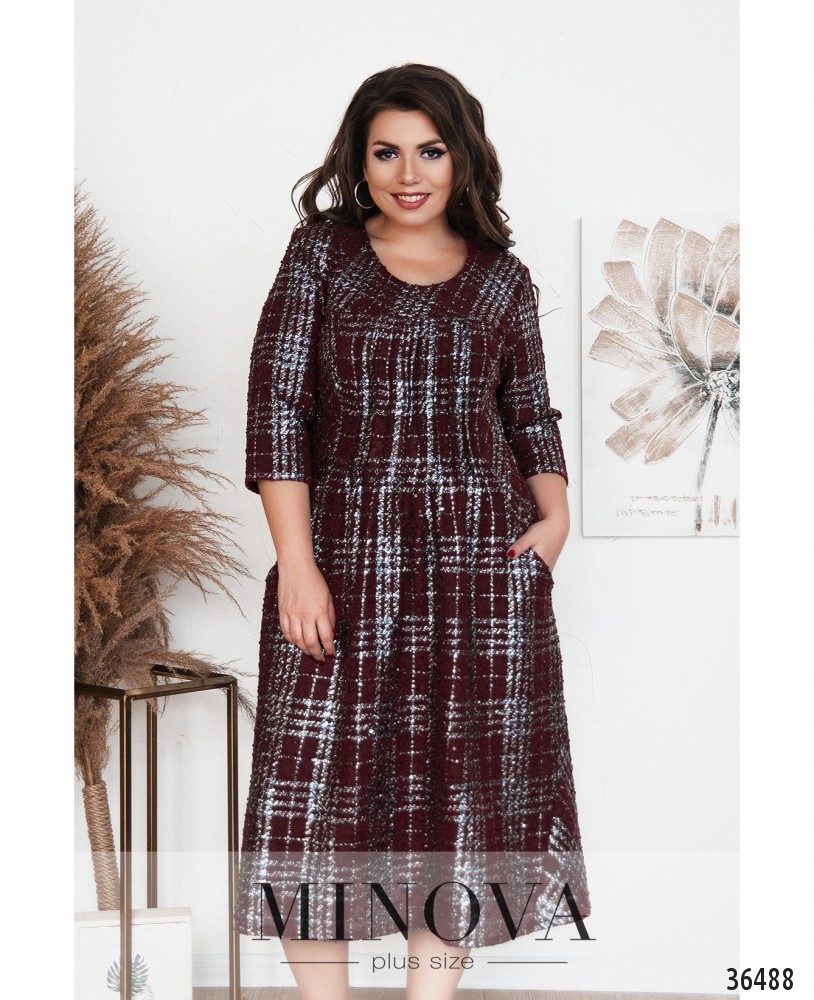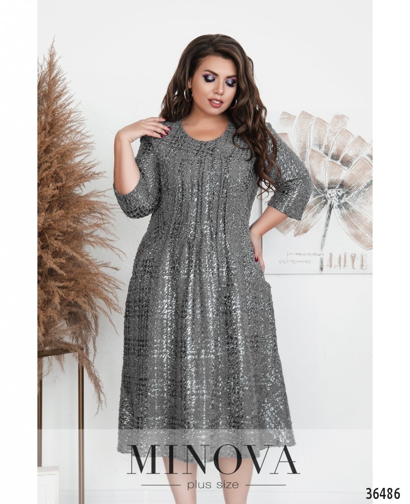 Мягкое повседневное платье батал из свежей коллекции Minova представлено в каталоге в нескольких вариантах: в крупную клеточку и в однотонной расцветке. Платье А-силуэта, на груди присобрано рядом продольных вытачек, подол расклешён, длиной приблизительно до колена. На груди небольшие вытачки. По бокам – врезные карманы, застёжек нет. Платье с нитями люрекса, которые делают образ более нарядным, особенно при ярком освещении. Рукава длиной ¾, без манжет. Прекрасный выбор для ношения дома или в неформальной обстановке, с любой удобной обувью на каблуке или плоской подошве.