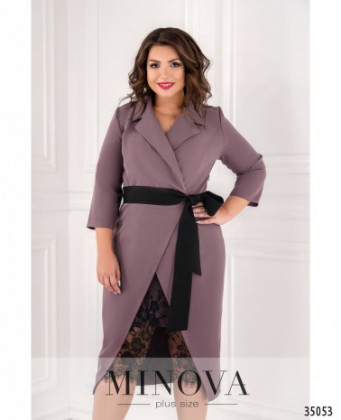 Очень нежное и нарядное приталенное платье батал от Minova позволит вам создать нарядное настроение даже на работе! Платье из лёгкой ткани, на запАх, с лацканами. Подол с глубоким вырезом, прикрытым ажурным изящным кружевом. Рукава ¾, без манжет. В наличии – пояс. Змейка расположена слева подмышкой, до бедра. Карманы отсутствуют. Длина миди. Можете выбрать яркий, пастельный или тёмный оттенок. Платье будет удачно смотреться на любой фигуре, а сочетать его лучше с туфельками на высоком каблуке или на танкетке. Пояс/аксессуар входит в комплект.