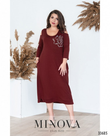 54 р-р: длина платья 100см, длина рукава 40см, обхват рукава 40см, ОГ – 112см, ОТ – 122см, ОБ – 128см.